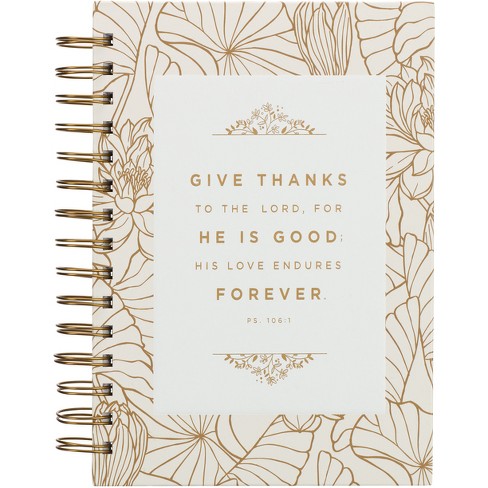 Hardcover Journal Give Thanks Psalm 106 1 Bible Verse White Gold Inspirational Wire Bound Notebook W 192 Lined Pages Large Spiral Bound Target